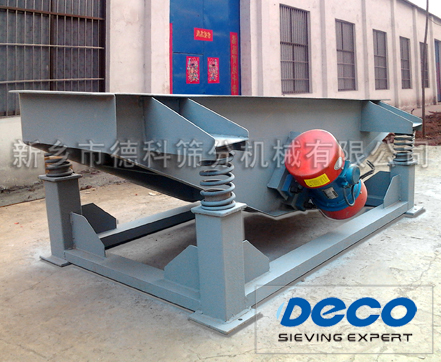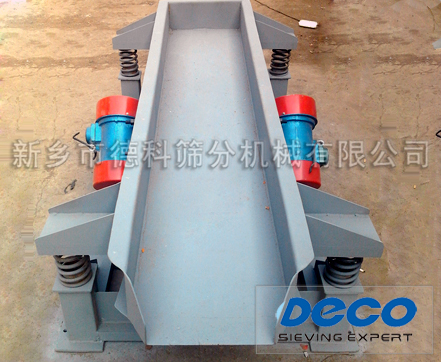 德科生產的GZG系列電機振動給料機又稱慣性振動給料機、振動喂料機等。振動給料機在生產流程中,配置在初級破碎設備之前,可把塊狀、顆粒狀物料從貯料倉中均勻、定時、連續地給到受料裝置中去,同時,除去物料中的泥土,雜質,控制給料量,使之與后續破碎,篩分生產線的處理能力相匹配,是成套生產線上的必備設備。